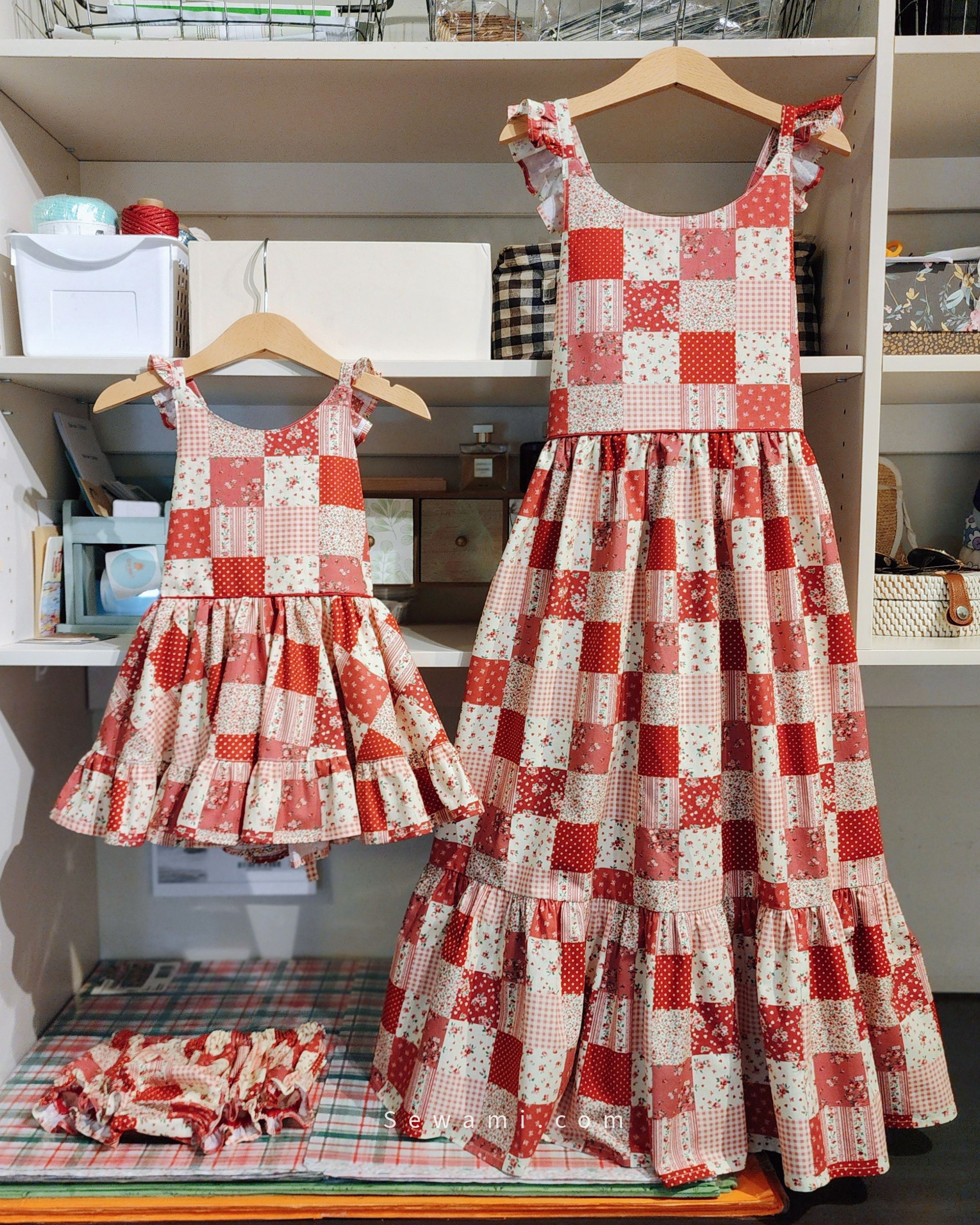 - Knee length versionย is available for sizes 2-7 (due to some of the fabrics' not being wide enough making a full circle skirt for larger sizes).ย